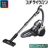 遠心分離式のプチサイクロン◆小型軽量ボディで、引き回しも持ち運びもラクラク本体の重心とキャスターの位置を近づけた設計で、引き回しがしやすく、段差の乗り越しや家具の隙間のすり抜けも簡単です。・段差乗り越し:段差を乗り越しやすい重心設計。・本体小回り性:旋回径が小さく、小回りしやすい。・すり抜け性:家具などに引っかかりにくい形状。・持ち運びやすさ:ハンドル位置が高く、ビッグハンドルで持ちやすい。◆本体サイレンサー構造とソフトキャスターで、運転音が小さく本体のサイレンサー構造により、吸気音・モーター音・排気音を低減し、さらにモーターのファンを9枚にすることで高周波音を抑えました。また、フローリングでの走行音を抑えるソフトキャスターを採用し、夜の掃除機がけに配慮しています。◆「ゴミ発見センサー」でハウスダストの量に合わせて省エネ運転する「エコナビ」搭載見えないゴミも、センサーランプが光ってお知らせ。ゴミがあるときは赤点灯、きれいなときは消灯します。 / ■ 仕 様 ■集塵方式:サイクロン式ノズルタイプ:パワーブラシ(軽走パワーノズル)吸込仕事率:300~約110W消費電力:850~約380W本体寸法(約):幅238×奥行293×高さ296mm本体質量(約):2.8kg(付属品含む:4.4kg)運転音:59~約56dB ※新基準(JIS C 9108 [2009年度改正申請案])集塵容積(約):0.25L電源コード長さ(約):5m付属品:ワンタッチ手元ブラシ、すき間ノズル / ※ふき掃除について※・ふき掃除は、水拭きする機能ではありません。またこぼした液体などが乾燥して付着した汚れはとれません。